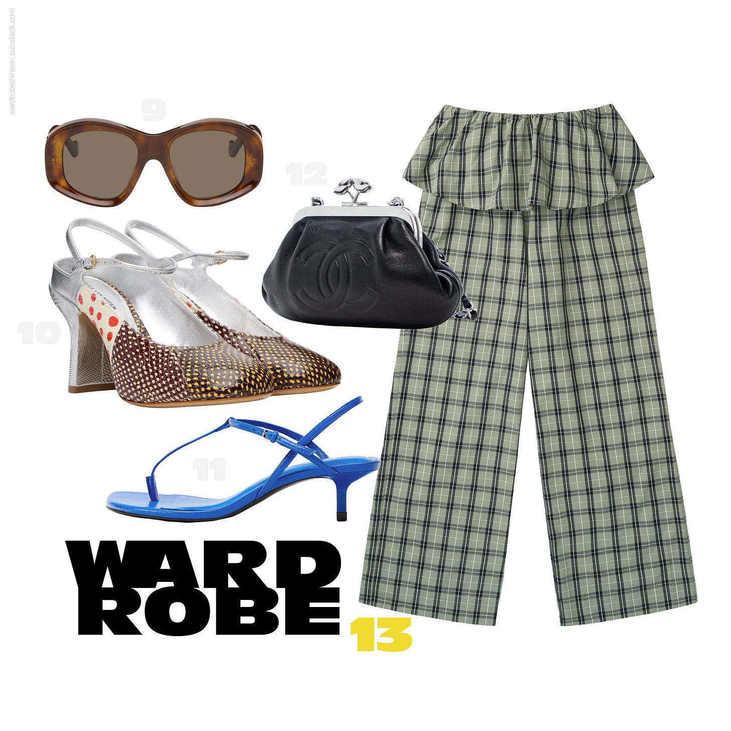 Brown Sunglasses | Multicolor Heels | Strappy Sandals | Kisslock Clutch | Renee Pant